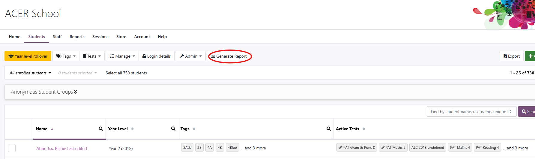 - Select the students who are to be included in the report. There must be a minimum of 10 students in each year level and gender group.