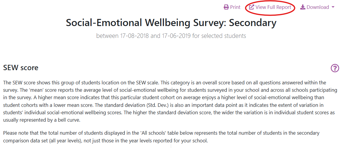 To view the report in full select the View Full Report icon at the top of the report. This option will generate