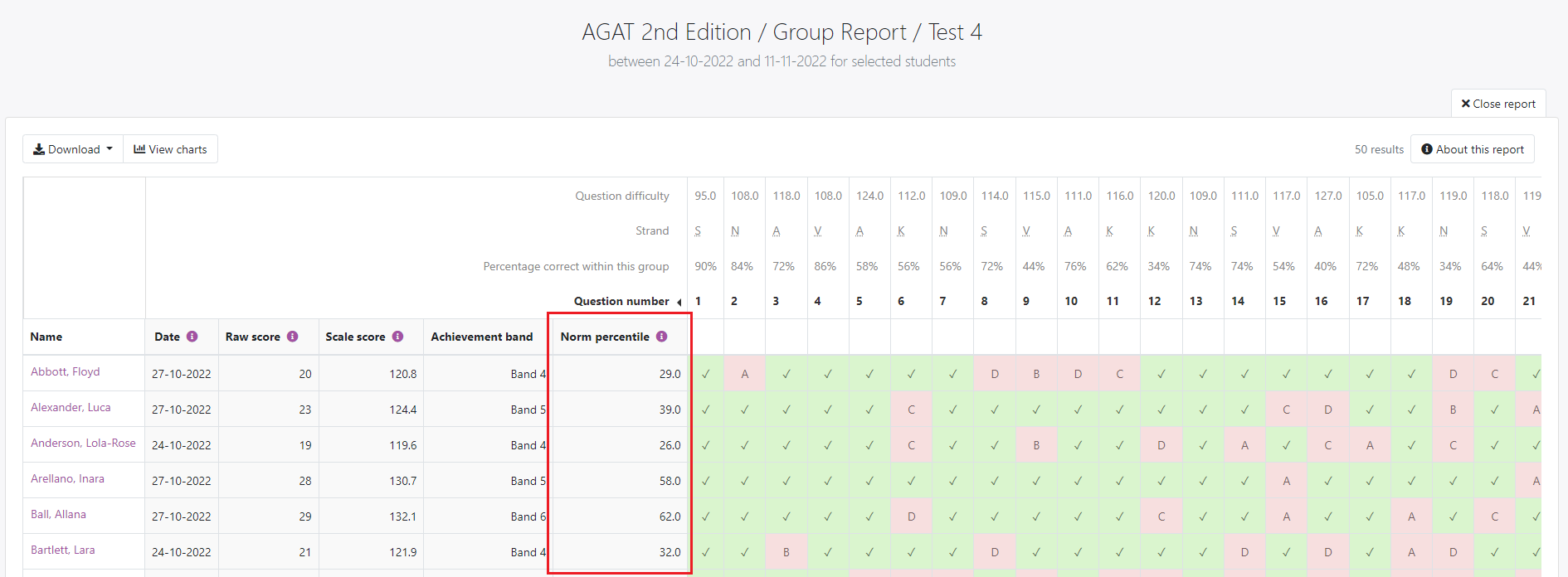 AGAT norm data collected in October – December 2019, representing the achievement of students across Australia, are available as a reference against which your students' ability can be compared.